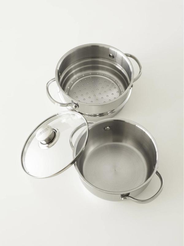 鍋とスチーマーがセットになっている構造は、蒸し料理に限らず多用途に対応できるよう設計されています。例えば、下鍋を単体で使用すればスープや炊飯に活用でき、蒸し器部分は野菜や中華まん、茶碗蒸しなどの調理に活躍します。