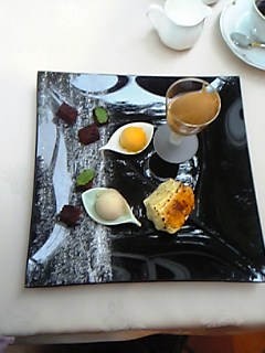 感動的なお味でした♪詳細は後ほど追記: 絶品スイーツはマイミクのウガジンさんのお店で頂いたものです。 ウェディング以外ランチやディナーの営業をしていない場所なので、 とっても貴重なお品を頂いてしまいました♪ コーヒーもとーっても美味しかったんですよ! 沢山おかわりいただいちゃいました。 帰りにいちごのスパークリングワインを1本頂いちゃいました。 ウガジンさんにお会いするのもとても久しぶりでした。 ワタシが結婚について色々悩んでいた頃だから、 約7年ぶりくらいかな。 そんなに久しぶりなのにとても暖かく迎えて下さり感動しました。 とても優しく暖かく、それでいてパワーのあるオーラを持っている方だと思います。 お忙しいのに沢山お話していただいてうれしかったです。 どうもありがとうございました。 スイーツの画像、もっと寄って撮れば良かったですねぇ。 1分半で溶けてしまうと言うキャラメルのアイス。 カラメルのほろ苦さがと甘さのバランスが絶妙! 口の中で溶けて行って喉の奥に流れるまでずっとシアワセです。 あんまり美味しくて力が抜けて、 ダラーとシャツにこぼしちゃったのですが(恥) 染み抜きグッズ沢山用意して下さってシャツにシミを残さずに済みました。 他はマンゴーと白桃のシャーベット。 プリンの表面をブリュレの様に焼いた物、 ガトーショコラです。 どれもどれもとっても美味しかったです。 美味しいスイーツは心までも笑顔になりますね♪