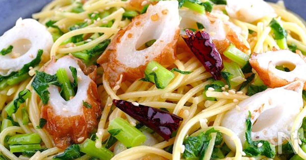 お昼ごはんにちょうど良い大根の葉っぱとちくわのペペロンチーノ