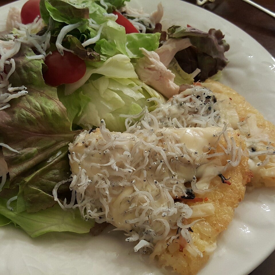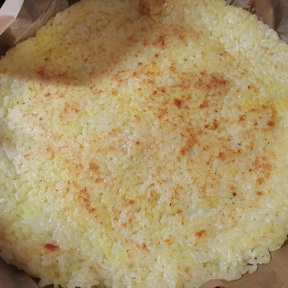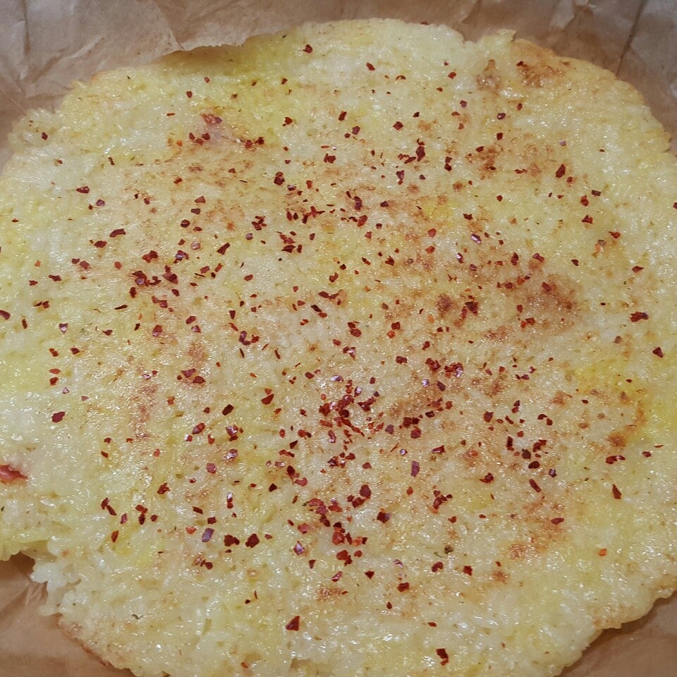 雑穀ごはんを丸めて叩いてのばしてクッキングペーパーをひいたフライパンで両面に焼き色をつけてカリッとさせます