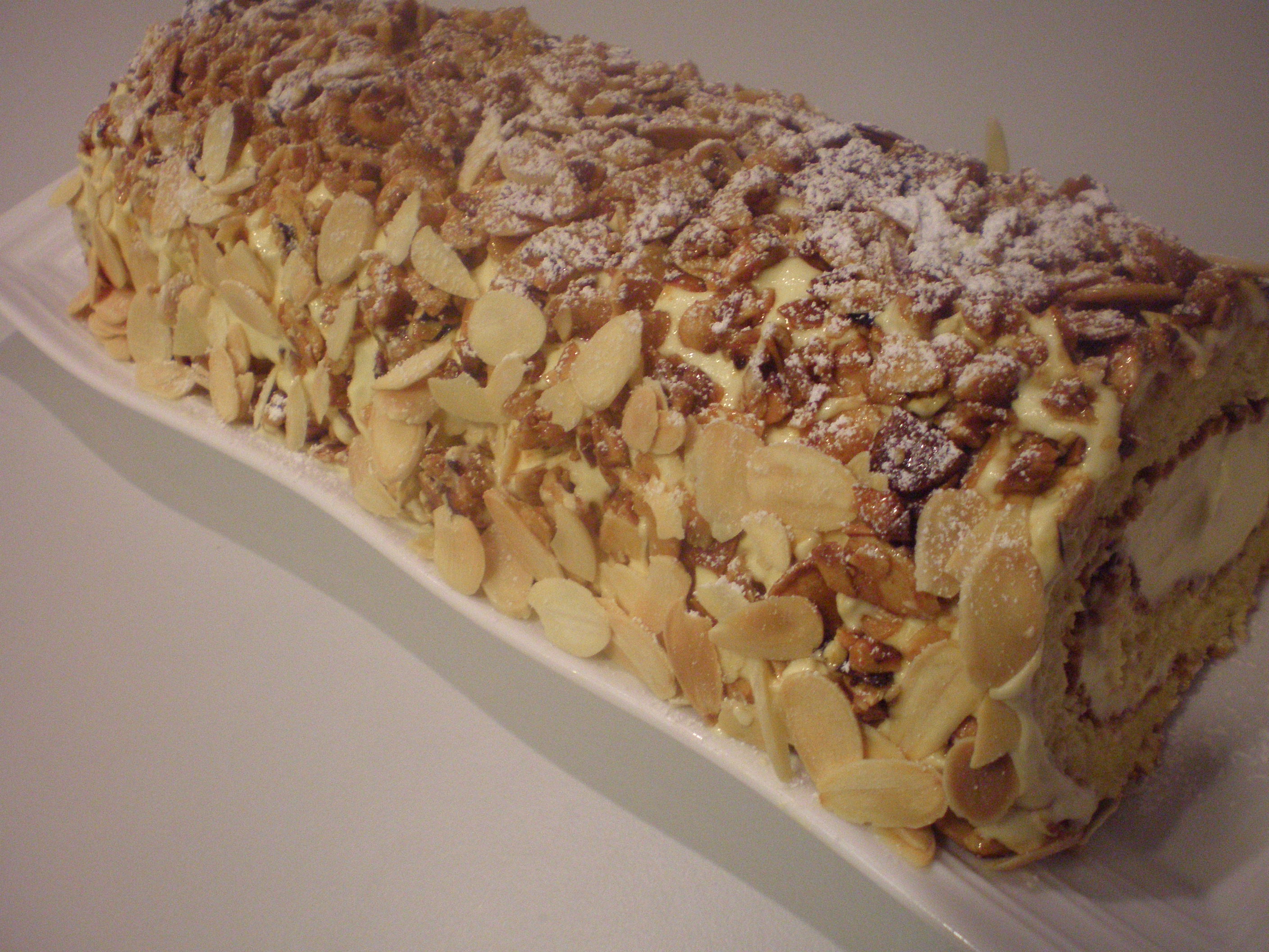 仕上げは、ヘーゼルナッツとスライスアーモンドをキャラメリゼして、クリームに貼り付けていますが、どうですかっ!滅茶苦茶美味しいそうじゃないですか?