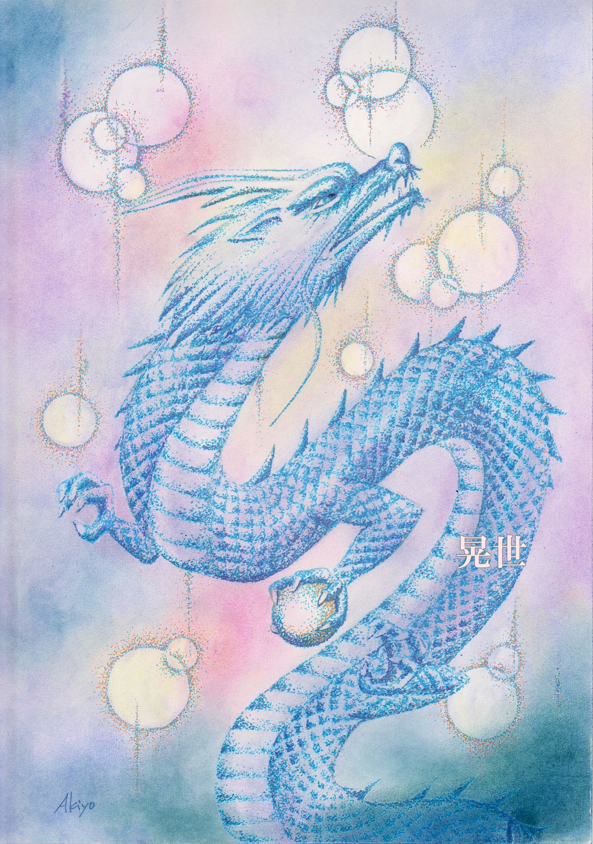 点描で描いていた龍。