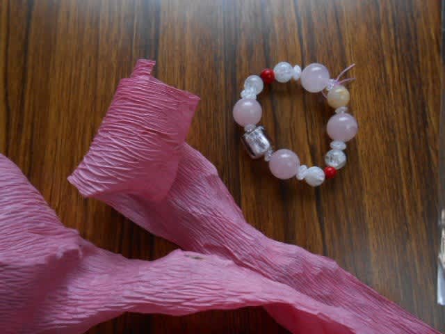 学習を早めにきりあげて{アジアン布-雑貨の店 ふあり様}から提供していただいた石とビーズで作りました