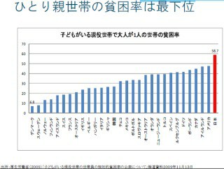 先進国の中でも特に一人親の貧困率が高く、早急の取組が必要です。