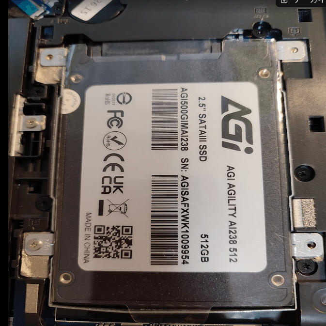 内蔵のSSDは200GB程度だったので手持ちの500GBのSSDに入れ替えます