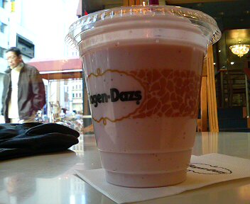 ハーゲンダッツ イチゴシェイク とても まいう~♪です 丸善で本を見る前に、エネルギー補給です 体調はほぼ全快! 外は少し風が有りますが コートの前は開けたまま ロングファーのマフラーがあれば寒くありません