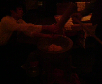 お餅をつく オーナーとバーテンさん