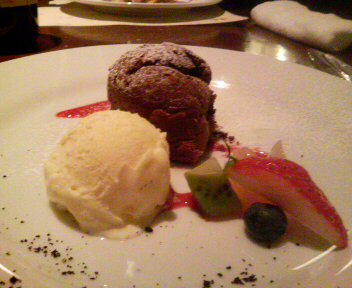 デザートは フォンダンショコラ♪ お隣でお食事をされていたグループの方の デザートの匂いにつられて これを選んでしまいました♪ チョコレートがとろ~り♪ でした♪ そしてこの日は奥のテーブルに 宝ジェンヌを2名取り囲んだ 8名ほどの団体様がいらっしゃっていていました 小さなお店なのでお顔もよく拝見させていただけました 名古屋で公演中だったんですね