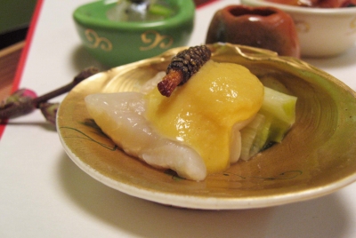 香楽お雛さまの日 世帯主さんのご家族と 料亭香楽で お食事をしました 春らしいお料理ばかりでした そういえばこの中央の オレンジ色の器に入っていた 海鼠腸(このわた) お姉さんのお子様の2歳児が ちゅるちゅる と美味しそうに食べていました(笑 筑紫もありました お部屋には香もたかれていました