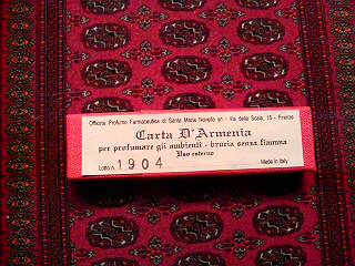 紙のお香 アルメニアペーパー 小さな赤い箱に香りの紙が入っています 紙をそのまま引き出しやバッグの中にしのばせたり またはお香として燃やします お料理の後の消臭用としても使えるそうです エスニックな感じの香りです