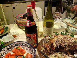 ボジョレー・ヌーボー 12本入り2ダース購入いたしました (世帯主さんのお母様) 今年の葡萄の出来はどうでしょうか 世帯主さんのファミリーと22種類いただきましたが んー なかなか いける味でした 今夜のおかずは 鯨・鰈のおさしみ ゆでた蝦蛄 ほうれん草のにんにく風味炒め にんじんのグラッセ ローストチキンなど 今日のローストチキンは おなかに入れたレバーライス 余っていた冷凍ご飯をチャーハンにして詰めましたが なかなかおいしく出来ました 満足♪満足♪ 帰りにボジョレー たくさんお土産にいただいてきました