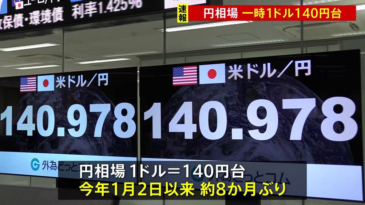【速報】円相場1ドル=140円台つける およそ8か月ぶりの円高水準 | TBS NEWS DIG (1ページ)さきほど、東京外国為替市場で円相場が1ドル=140円台をつけました。円相場が140円台となるのは今年1月2日以来、およそ8か月ぶりです。きょう、日銀の中川審議委員が講演で、経済と物価の見通しが実現していくとす… (1ページ)newsdig.tbs.co.jp
