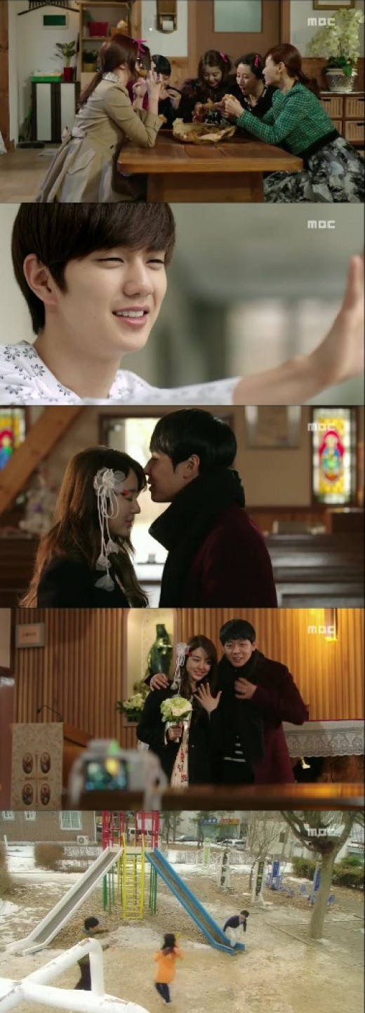 スヨンとジョンウがヒョンジュンに会い出る道に初雪が降った。二人は約束した通り二人だけの結婚式をあげた。ジョンウは "風が吹けば、お互い防いでくれればいい。雨が降れば傘を一緒に使えばいい。初雪が降る日にはこれに会えばいい"と話した。そしてジョンウはギムミョンフイ(ソン·オクスク)に電話をして "母さんありがとう。や育ててくれて恋人もされて"と感謝の気持ちを表わした。ミョンヒは感動の涙を流した。