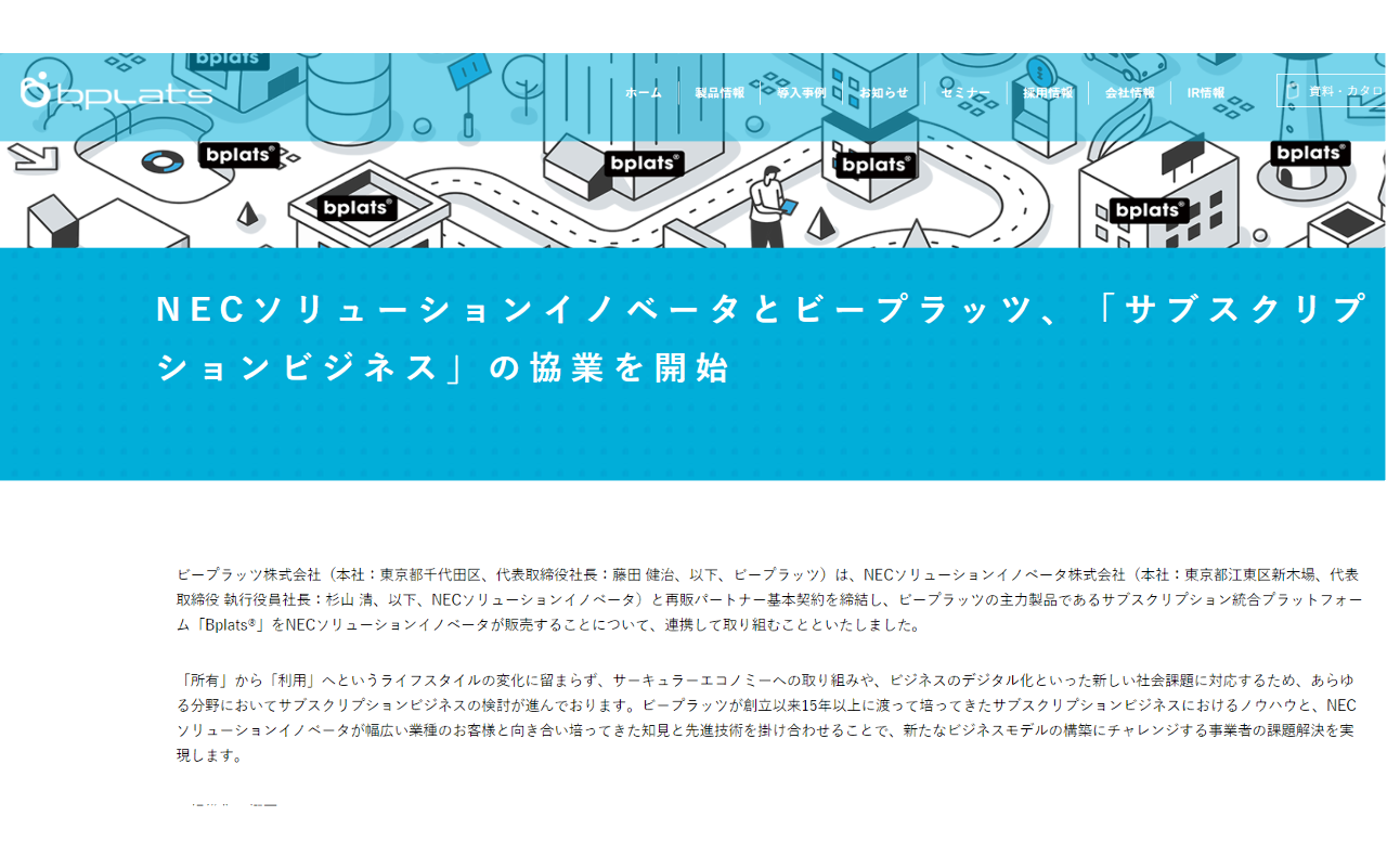 No.15336 2022.03.01 N… - 4381 - ビープラッツ(株) 2022/02/15〜 - 株式掲示板2022.03.01NECソリューションイノベータとビープラッツ、「サブスクリプションビジネス」の協業を開始finance.yahoo.co.jp