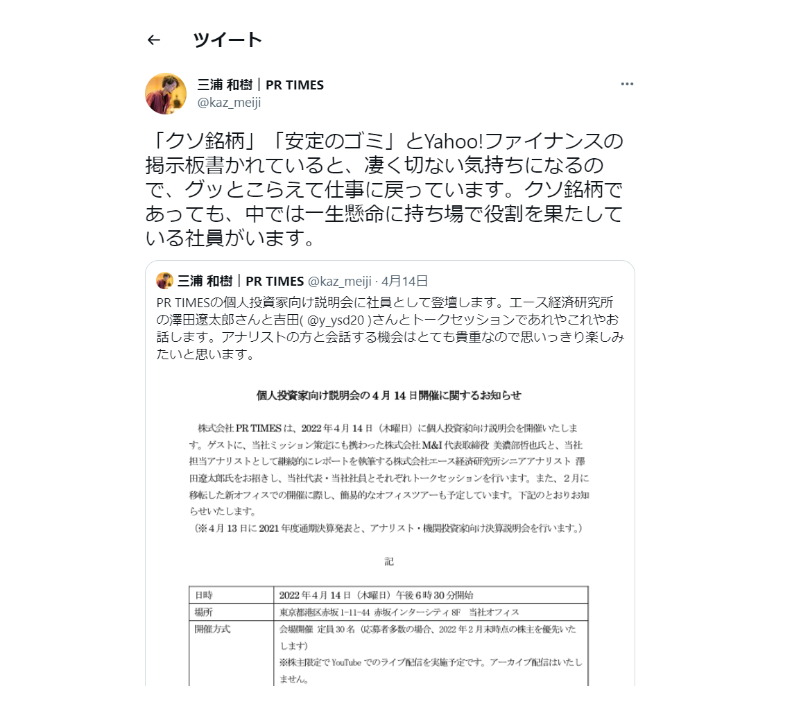 私はこれまでにブログでもヤフーファイナンス掲示板においても、何度も口酸っぱく『上場企業の役員はじめ社員』や、そのステークホルダーの多くの人が見ていますよと言い続けてきました。