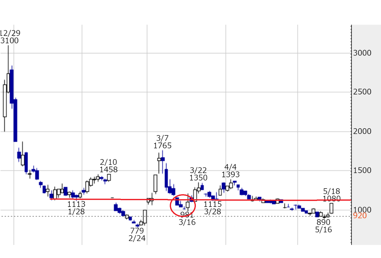 凄腕さん達はもちろんのこと、まだ材料株に慣れていない方や初めてこのブログを見られ方は今後の参考までにチャートの見方として覚えておくのも良いでしょう。