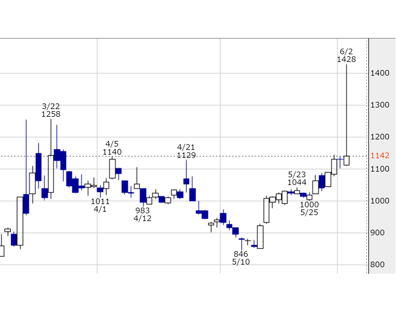 その後は上で買った人達によるパニック売りとなり、15時の大引けを迎えてしまいました。