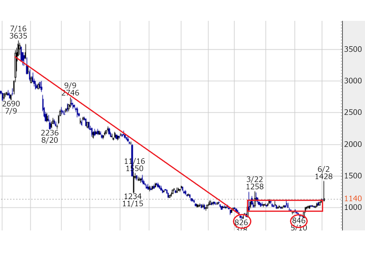 その後は綺麗なラウンドボトムを形成し、昨日の私が書かせて頂いたところよりも少し上の1317円まであったようです。