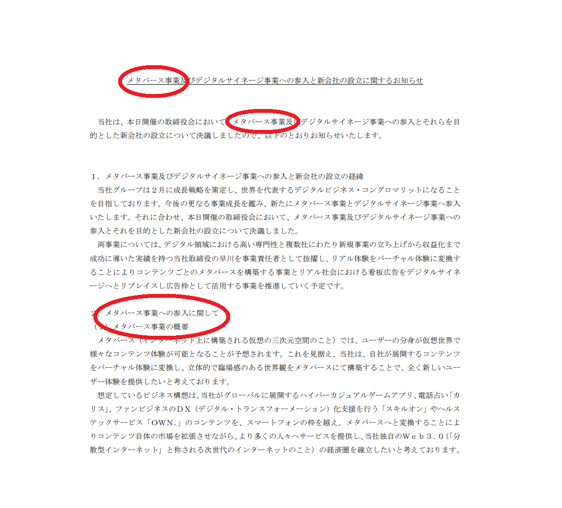 しかも、メタバース事業へ参入に関する隠れ材料があることもきちんと書いています^^