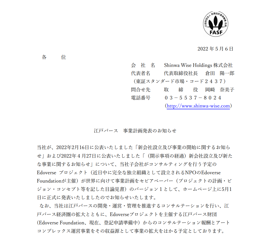 2023年の12月末 【江戸バース】ゲーム正式開始に向けて織り込みに行くと思いますので、長い視点で見て行く必要があるかと思います^^