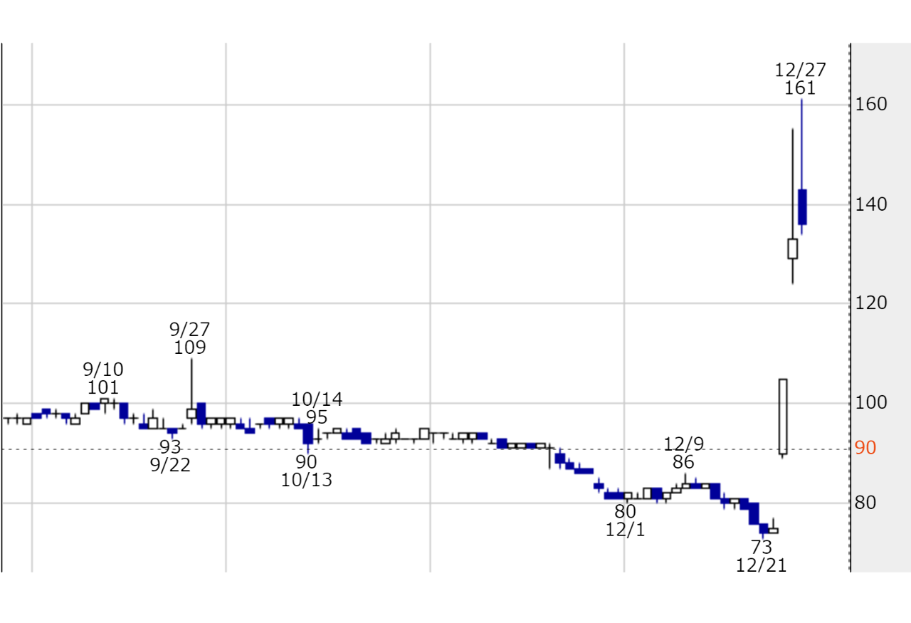 本日で3日連続ストップ高となり、2泊3日で株価2倍達成しました。