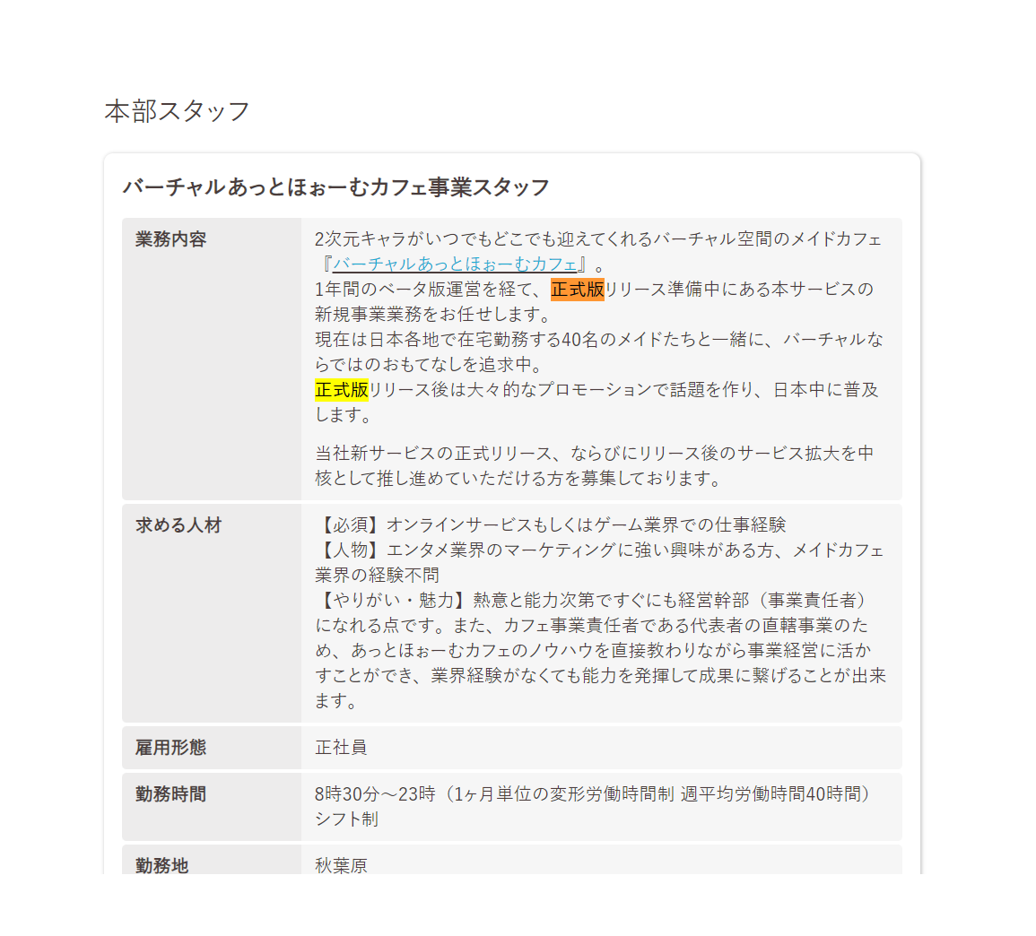 現在は正式版ローンチに向けて新人メイド候補を募集しているようです。
