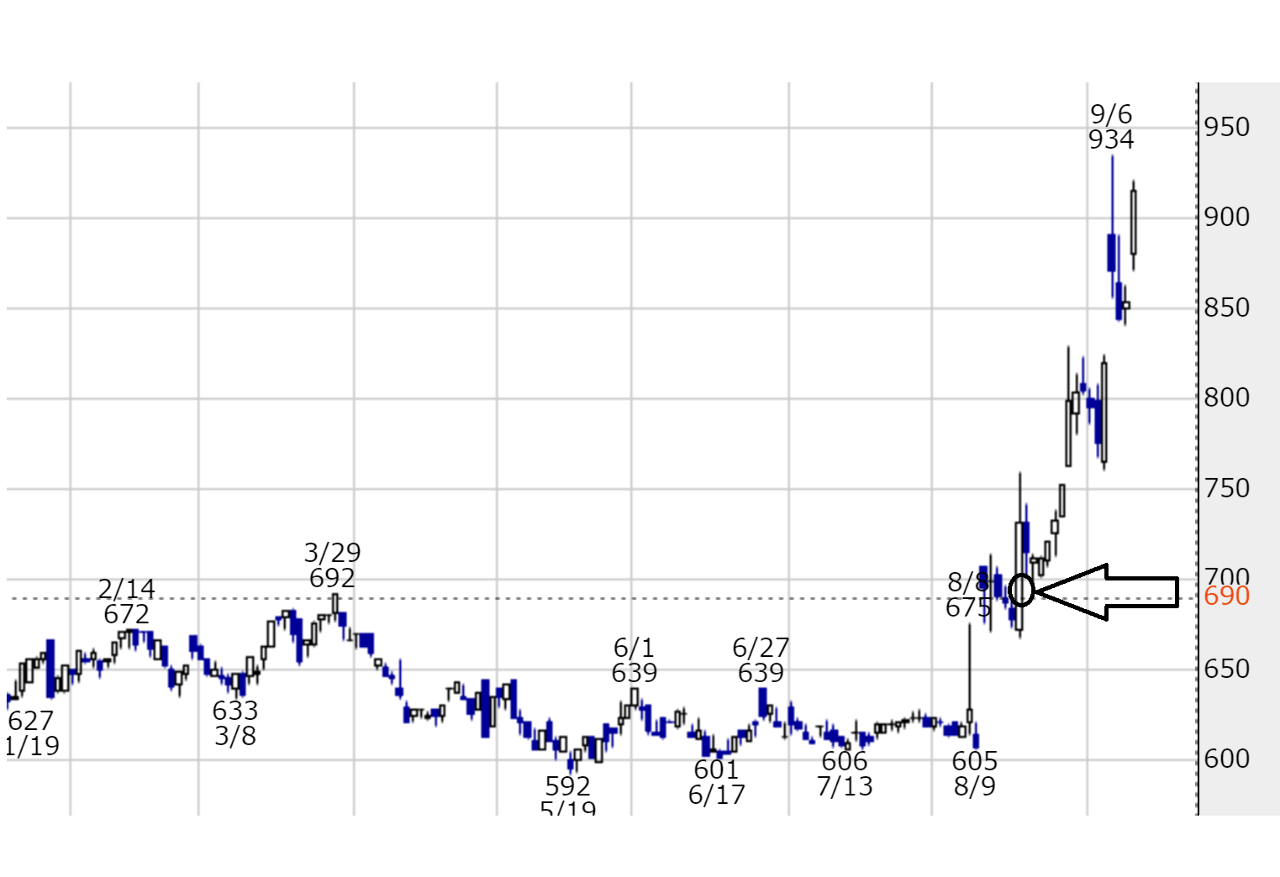 680円くらいのところで既出連呼してる生産性の悪い人と、それに便乗してワーワー騒いで売り煽り空売りをした人と、チャートやバリュエーションを見て材料の善し悪しを判断して生産性の高い取り組みをした人ではこのたった1銘柄だけでも雲泥の差が出ているということを認識して頂きたいと思います。