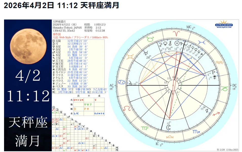2026年4月2日の天秤座満月のホロスコープ配置をもとに、