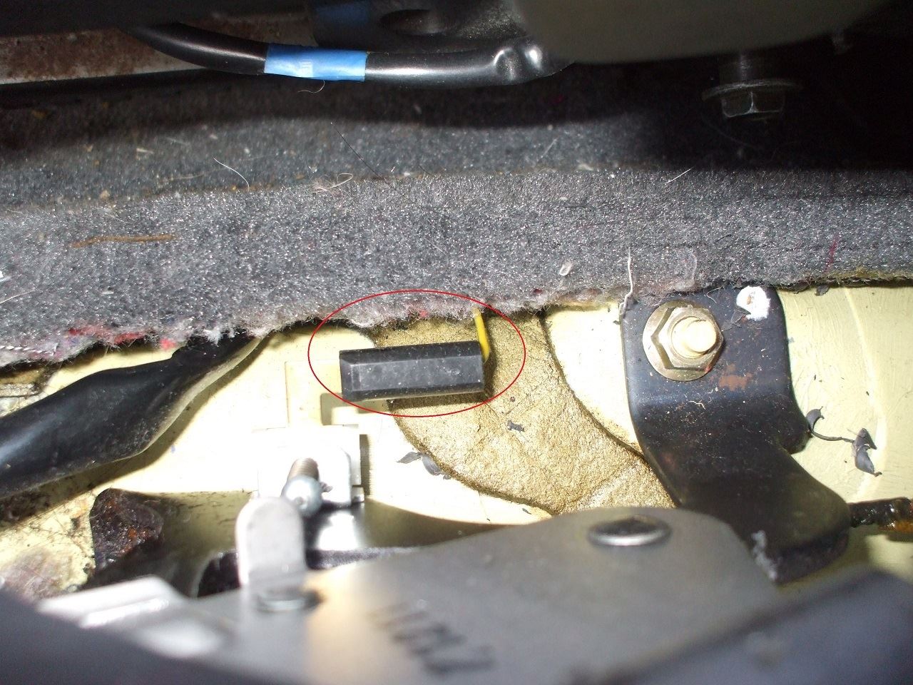 5、下の画像の赤丸で囲ってある線がパーキングブレーキセンサーです