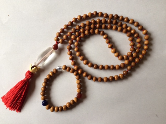 サンダルウッドのビーズを108個つないでほしいとのこと。