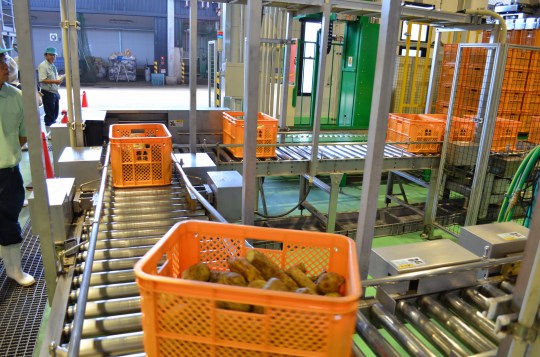 同社の工場には、8月から12月初旬までの毎日、南九州各地から1工場につき約80トンものイモが運び込まれています。