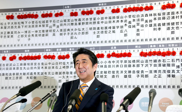 首相、憲法改正に意欲 テレビ東京の番組で首相、憲法改正に意欲 テレビ東京の番組で 安倍晋三首相は14日、与党圧勝を受けて憲法改正を進めるかを問われ、「そういうことですね」と応じ、意欲を示した。テレビ東京の番組で述べた。インタビューに笑顔でこたえる自民党の安倍晋三総裁=14日午後10時20分、東京・永田町の党本部、飯塚晋一撮影