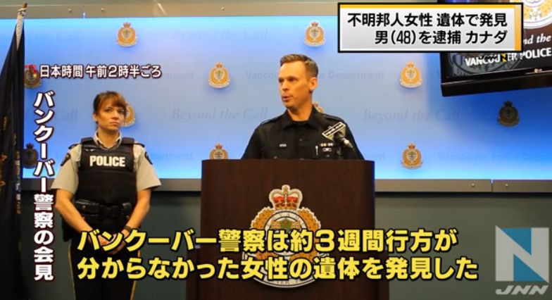 犯人も逮捕【ニューヨーク共同】カナダ西部バンクーバーの警察は9月30日、留学中に行方不明に