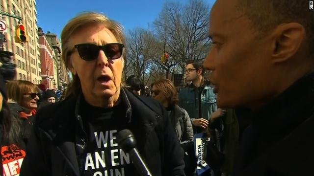 (CNN) 米首都ワシントンをはじめ全米各地で銃規制を求める大規模デモが行われるなか、ニューヨーク市内での行進には、ビートルズの元メンバー、ポール・マッカートニーさんの姿もあった。CNNとのインタビューで、参加したのは1980年代に集会会場の近くでもう1人のメンバー、ジョン・レノンさんが射殺されたからだと語った。
