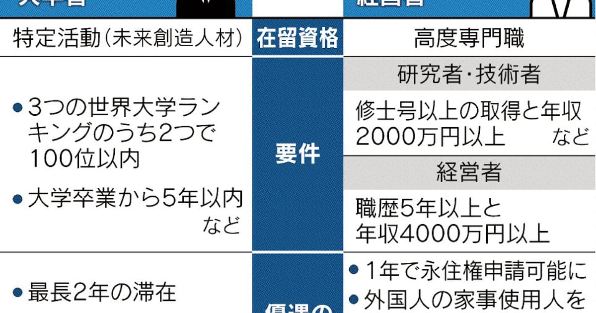 また家族帯同、子どもを教育のためインターナショナルスクールに入れるなら(日本の学校に入れるという前提ではなく)現地に置いて連れてこないだろうから優秀な子どもたちを日本に入れるという二次的な効果も考えにくいと思います。