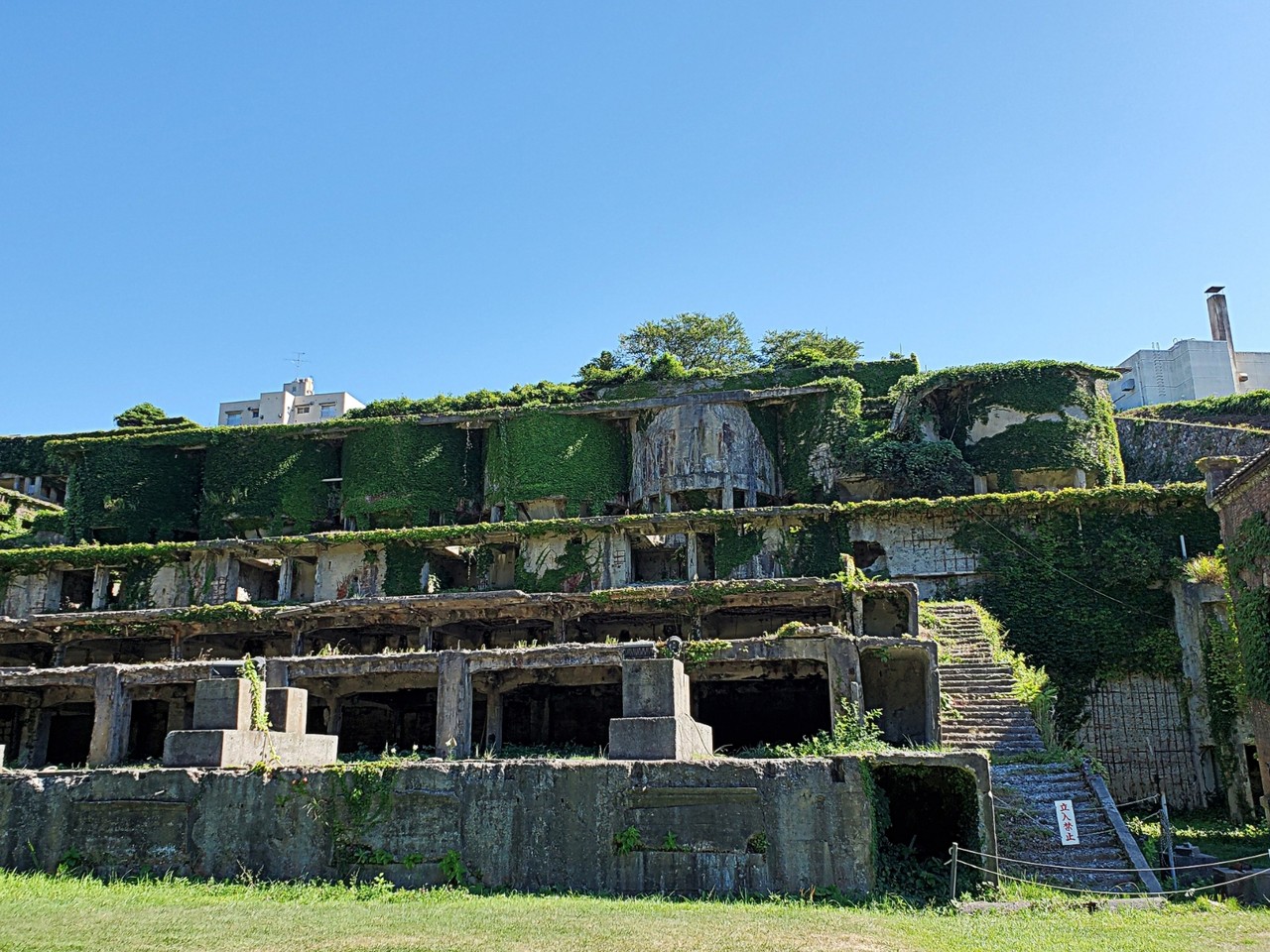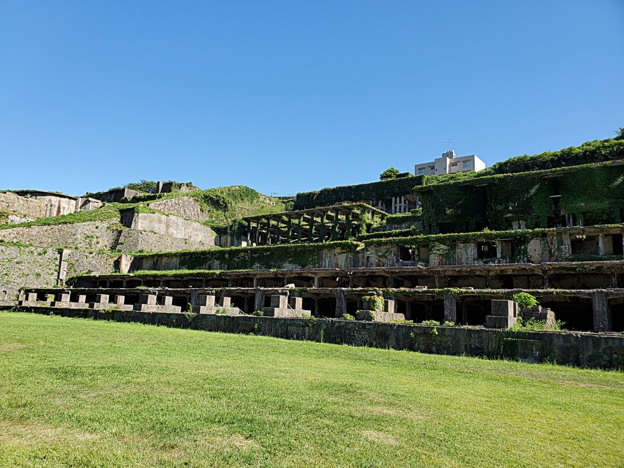 わたしのお気に入りフォト【風景部門】 佐渡にいったら絶対に外せない場所「佐渡のラピュタ」と称される北沢浮遊選鉱場跡1937年(昭和12年)に建造され東洋一といわれた鉱石の処理場でしたが佐渡鉱山の縮小により、1952年(昭和27年)に閉鎖となりましたその操業僅か20年足らず…隣りには赤レンガ造りの石炭火力発電所跡遺跡として遺された選鉱場の「土台」斜面を利用して雛壇状に造られた、横115m、縦80mの巨大な選鉱場は1ヶ月に約5万トンの鉱石の選鉱処理をしたということです川を挟んだ選鉱場の向かい側にはキューポラが残る鋳造工場跡と丸い巨大な北沢50mシックナーが見えますシックナーってなんだろう? 直径が50mもある円盤状の建物、シックナーは金銀などの鉱物と水を分離するための泥鉱濃縮装置で古代ローマのコロッセオを思わせる建造物です夏は期間限定でライトアップされるそうでより幻想的な眺めになることでしょう(2019年8月15日 訪問)