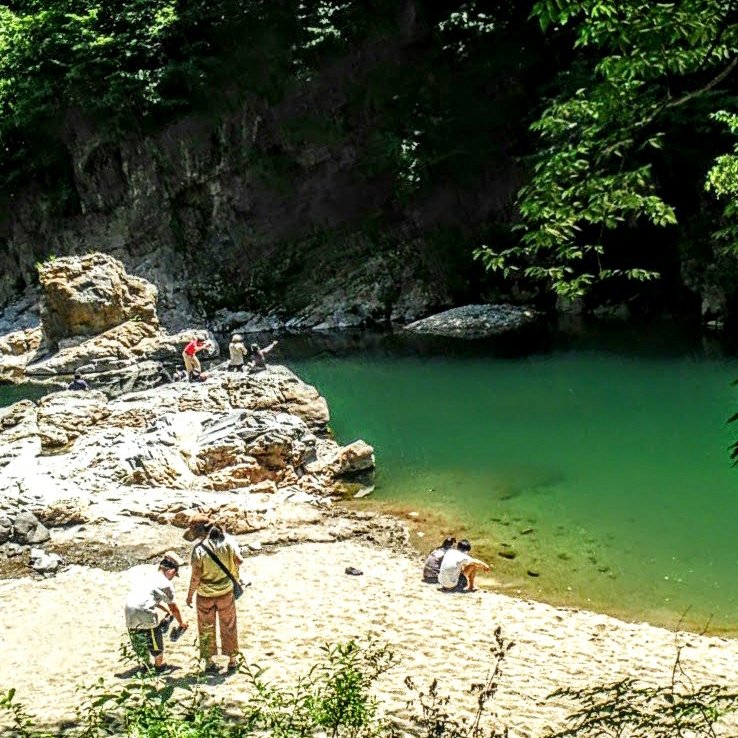 虹見橋から眺めるエメラルドグリーンの美しい流れ