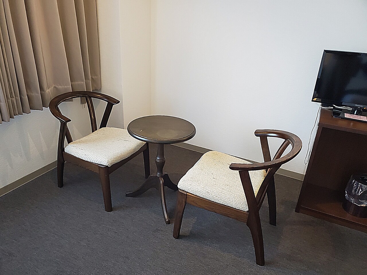 (座ってシワになった💦)ベッドはシングルでやや狭い