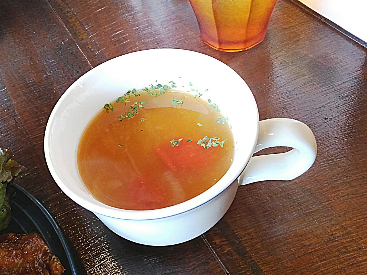 本日のスープ、春キャベツとトマトのスープ