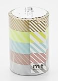 - マスキングテープ mt MT05SP05 ストライプセットE(金・若葉・水色・退紅・銀) 5コセット/カモ井