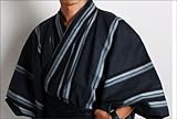 - きものやさん 大人の男浴衣3点セット黒細縞(適応身長168cm~175cm)【送料無料】/作者不明