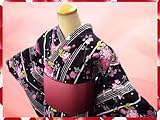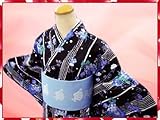 - 夏粋浴衣3点可愛セット♪黒地ブルー八重桜桜/作者不明