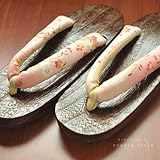 - 【下駄浴衣用】やわらか鼻緒で歩きやすい下駄「焼桐×薄紅・淡黄 桜」/作者不明