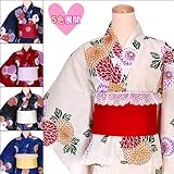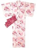 - 【着物問屋】女の子ゆかた【桜】 赤/サーモンピンク 90/100/110/120/作者不明