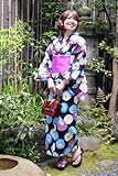 - 夏粋浴衣3点可愛セット♪黒地ライン可憐花ブルー/作者不明