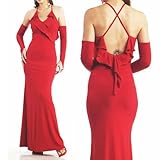 - ■情熱レッド♪胸元フリル大人のロングドレス赤/kc51/作者不明