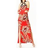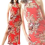 - 上品な和花柄☆ホルターチャイナドレス赤x白M/mc71/作者不明