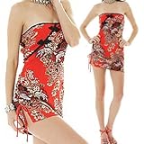 - ベアトップの可愛いミニ丈チャイナドレスワンピM赤/vc13/作者不明