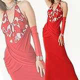 - スパン刺繍&ラインストーン♪ゴージャスPartyロングドレス赤/hc55/作者不明