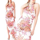 - 上品な和花柄♪ホルターチャイナドレスM白xピンク/uc20/作者不明
